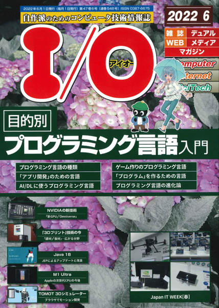 新たにリリースしました「TOMOT 3Dシミュレーター」が、2022年6月1日発行雑誌「I/O 6月号」の「目的別 プログラミング言語入門」の特集で紹介されました(4ページ分)。